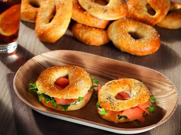 El bagel es un pan elaborado tradicionalmente de harina de trigo y que suele tener un agujero en el centro. Antes de ser horneado se cocina en agua brevemente, dando como resultado un pan denso con una cubierta exterior ligeramente crujiente. El bagel se originó en Polonia.