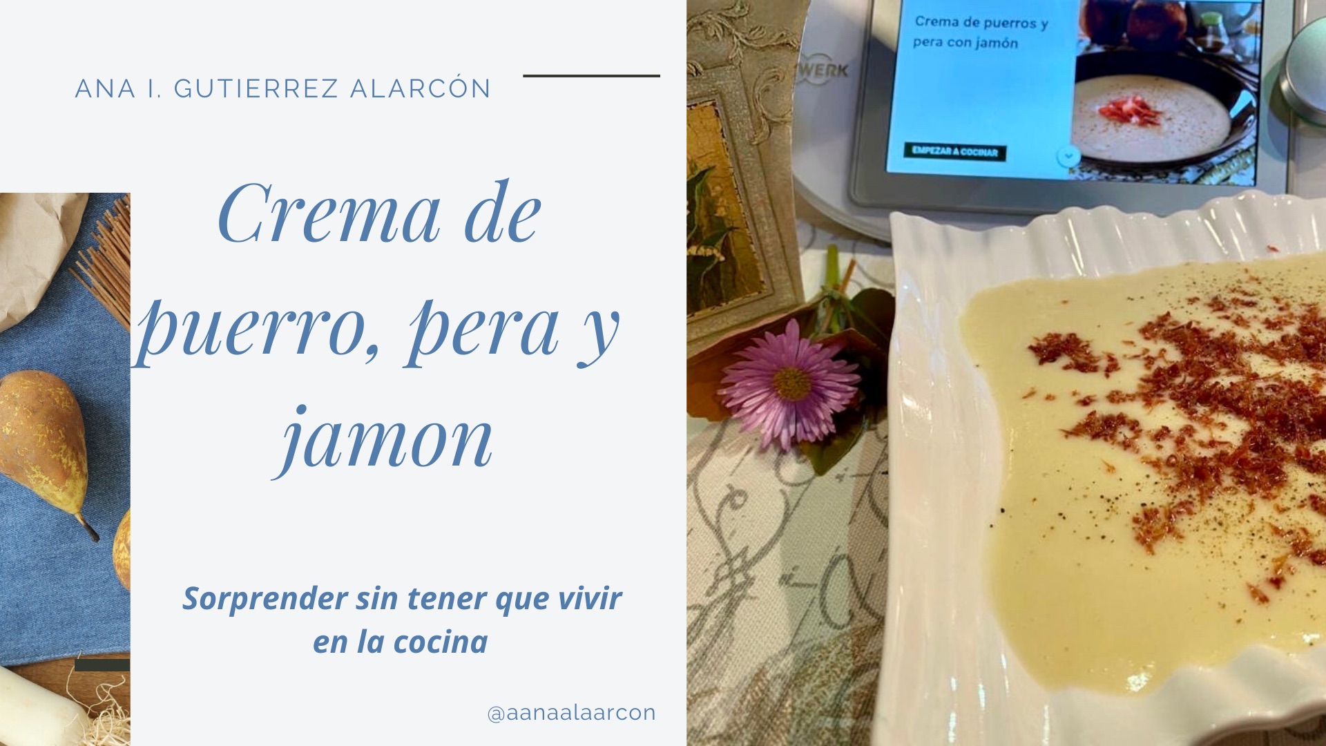 Crema de puerros pera y jamón