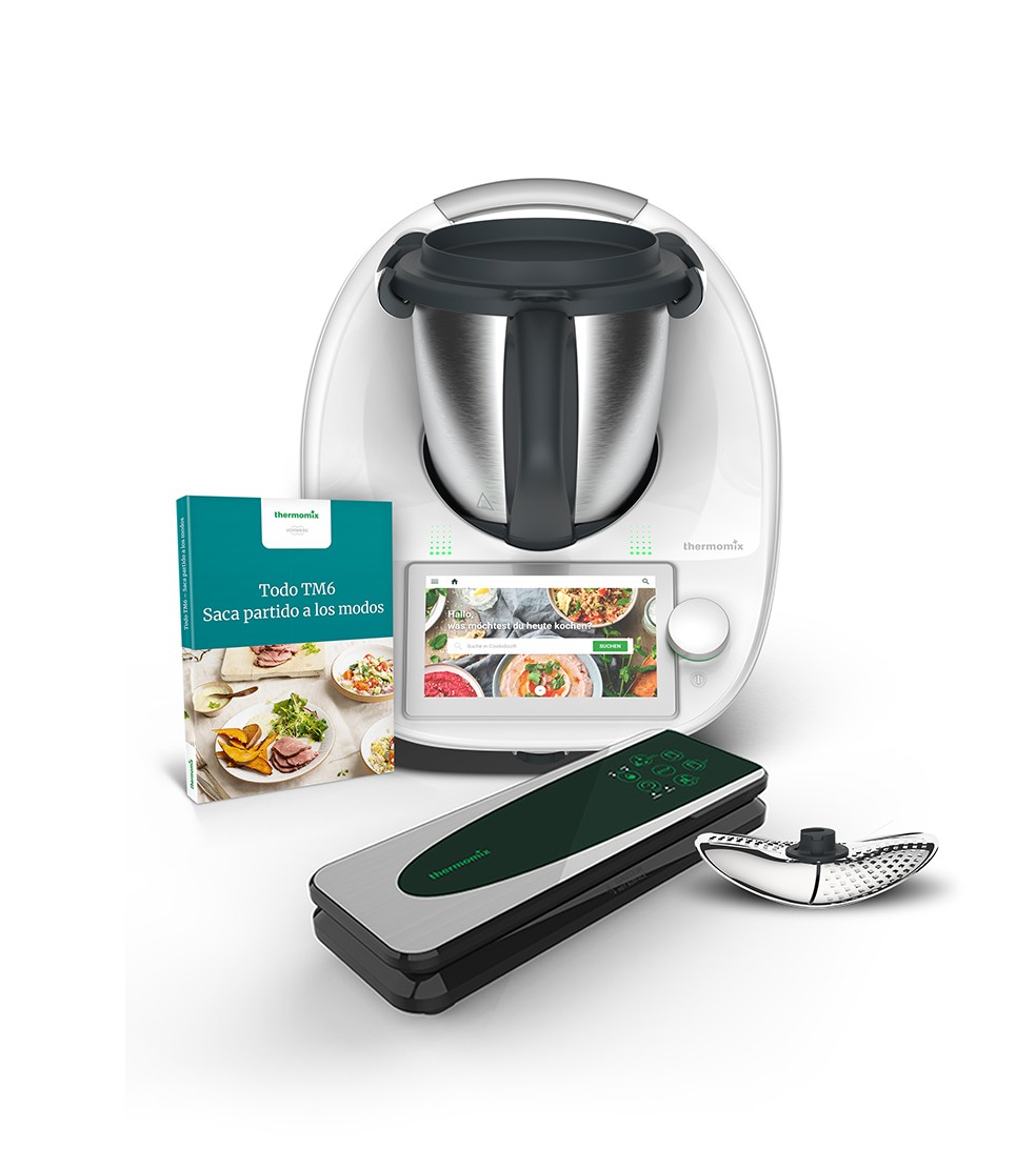 La nueva edición Todo Tm6 está compuesta por el Thermomix Tm6, una maravillosa envasadora al vacío, el nuevo cubrecuchillas pelador y el libro “Todo Tm6” para ayudarnos a sacarle el máximo partido a todos los modos exclusivos del Tm6.