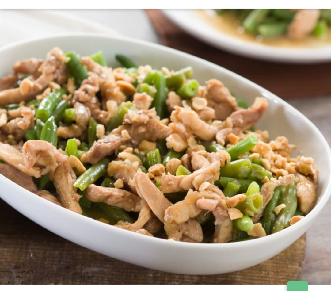 JUDÁAS VERDES AL VAPOR CON POLLO EN SALSA DE CACAHUETES