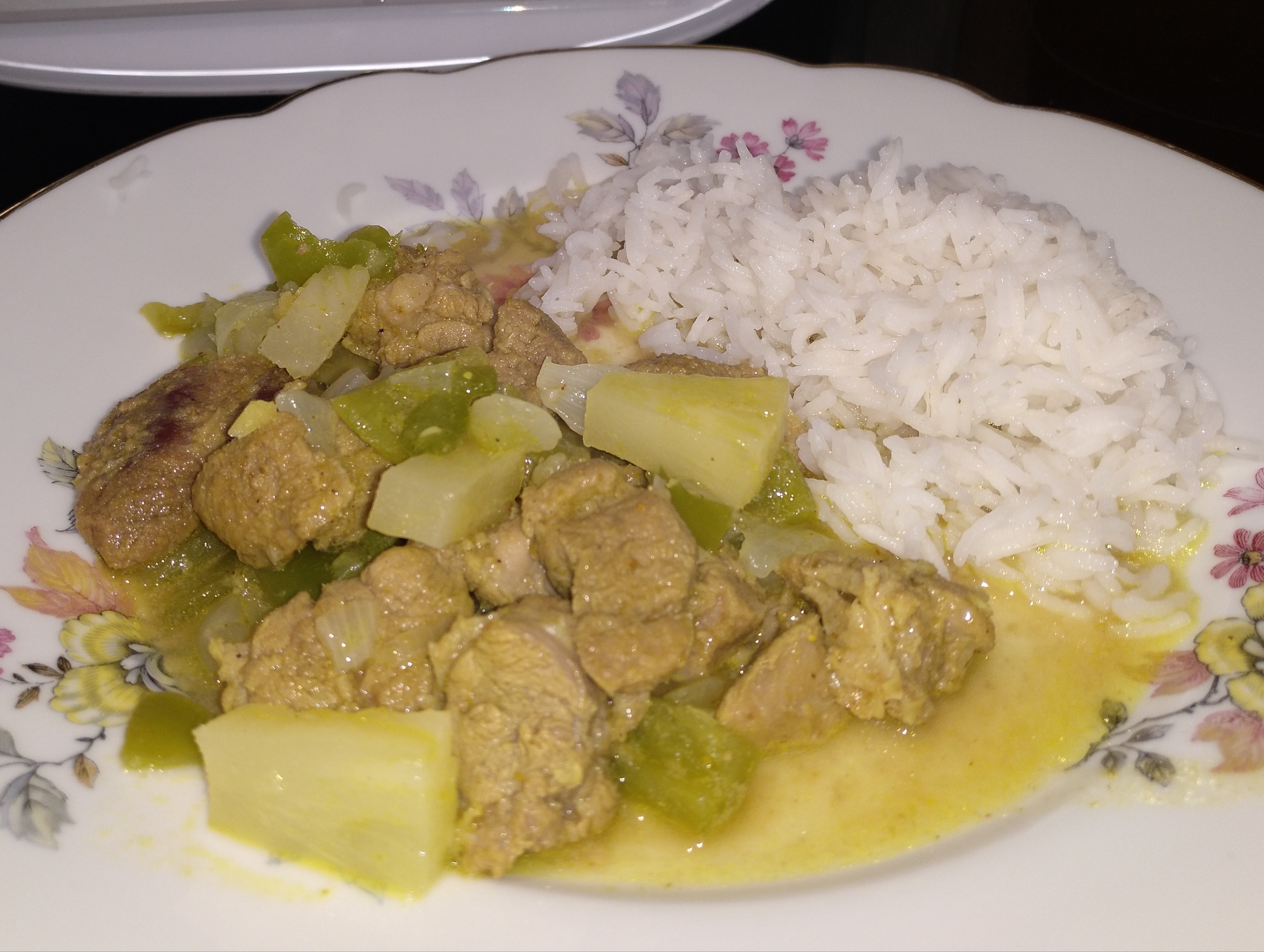 CURRY DE CERDO Y ARROZ BLANCO AL VAPOR CON THERMOMIX EN MÉNDEZ ÁLVARO
