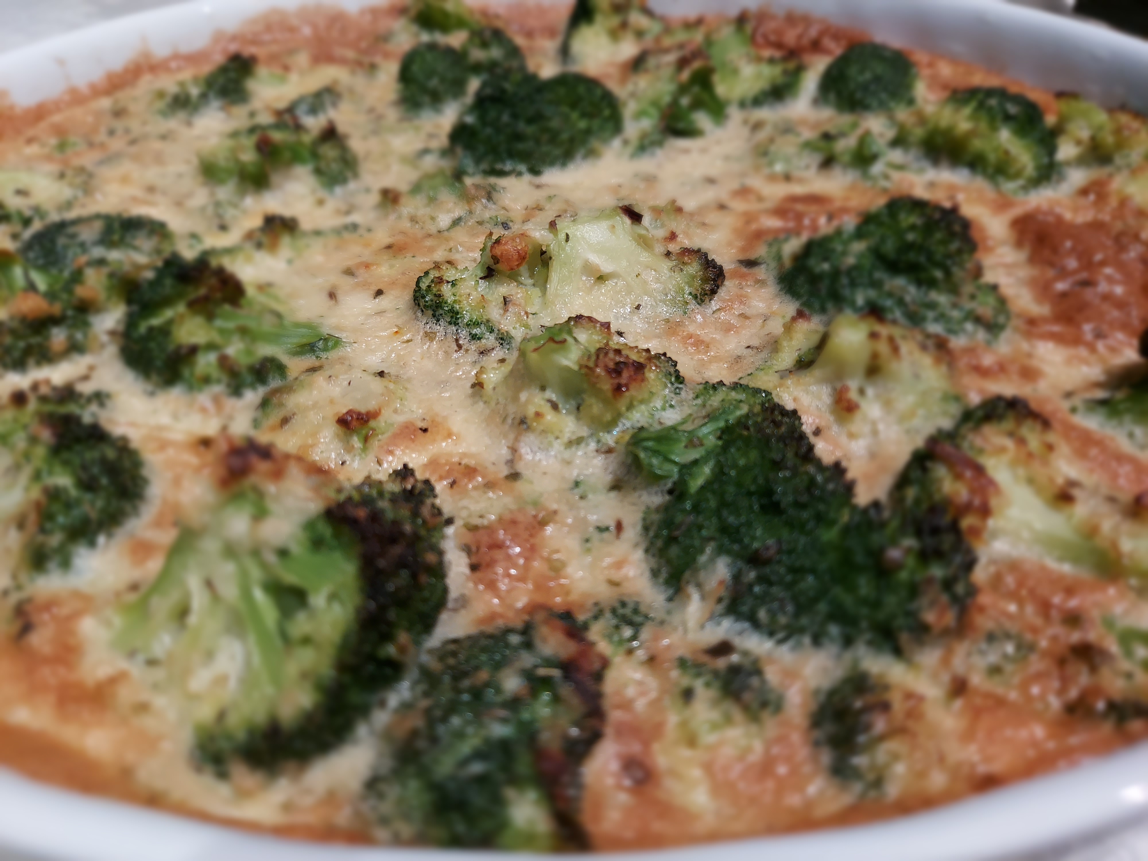 Yo la hice con brócoli en el horno, en un molde poniendo un poco de aceite para que no se pegue. Si tenemos un molde desmoldable podemos poner un papel de horno para que no se pegue al fondo.