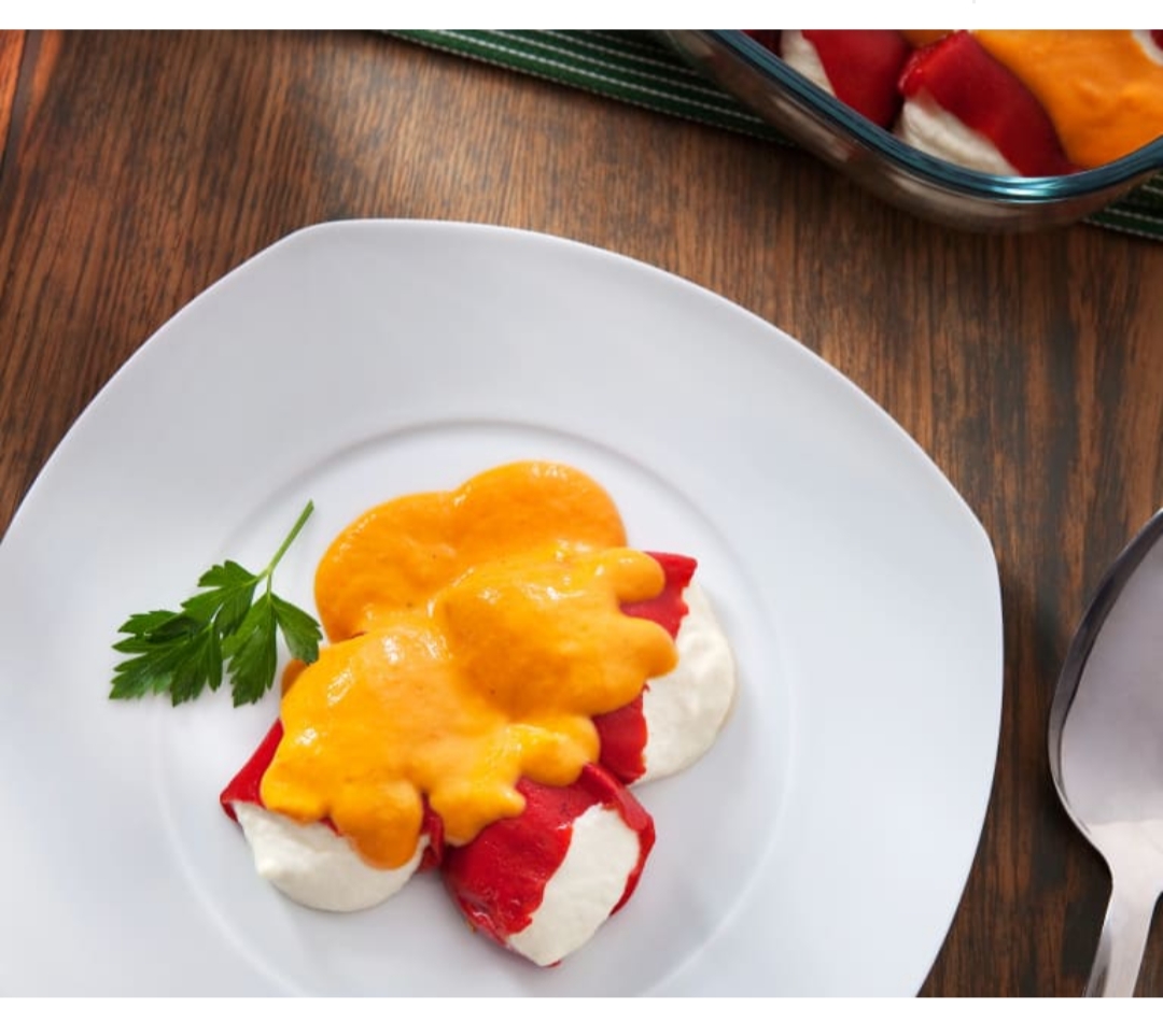 5. Vierta la salsa sobre los pimientos y hornee (180°C) durante 10 minutos. Sirva calientes.