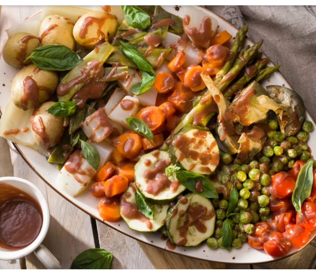 PANACHÉ DE VERDURAS DE PRIMAVERA CON VINAGRETA DE FRESAS