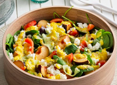 Ensalada de espinacas y ciruelas con vinagreta de mango