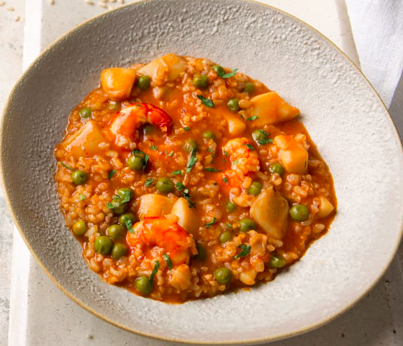 Arroz integral meloso con sepia y gambones