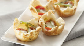 • Añada la nata, la pimienta, la sal y el orégano y mezcle 5 seg/vel 3. Reparta la mezcla sobre las tartaletas de hojaldre.
