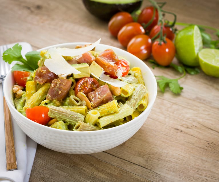 BOWL DE PASTA MULTICEREALES CON ATÚN FRESCO Y SALSA DE AGUACATE