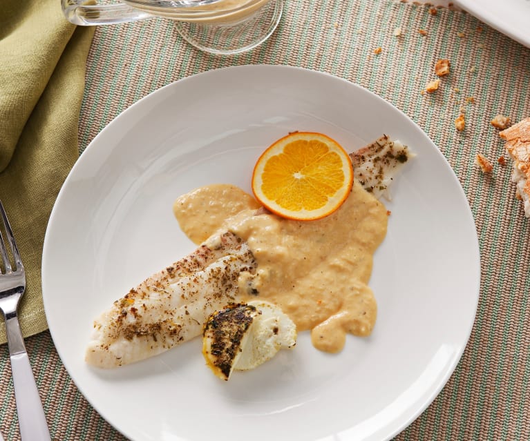 LENGUADO AL VAPOR CON SALSA DE NARANJA A LAS FINAS HIERBAS CON THERMOMIX®