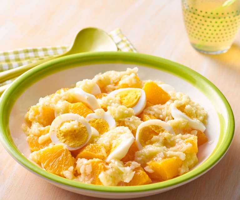 3. Ponga las naranjas en una ensaladera con los huevos duros cortados en rodajas o en trozos y vierta encima el aliño del vaso. Sirva o reserve en el frigorífico hasta el momento de servir.