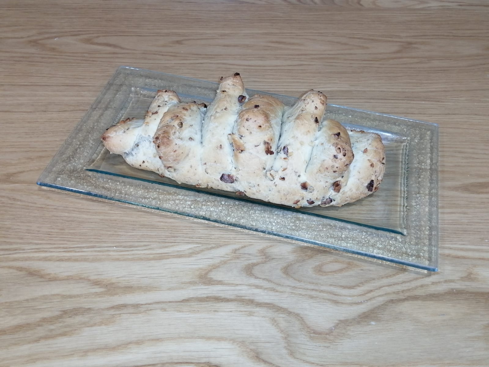 En esta receta, he utilizado la receta de bollitos de aceite, y una vez finalizado el amasado, he añadido 50 gramos de nueces, 3 segundos velocidad 7, así trocea las nueces y mezcla con la masa a la vez.
