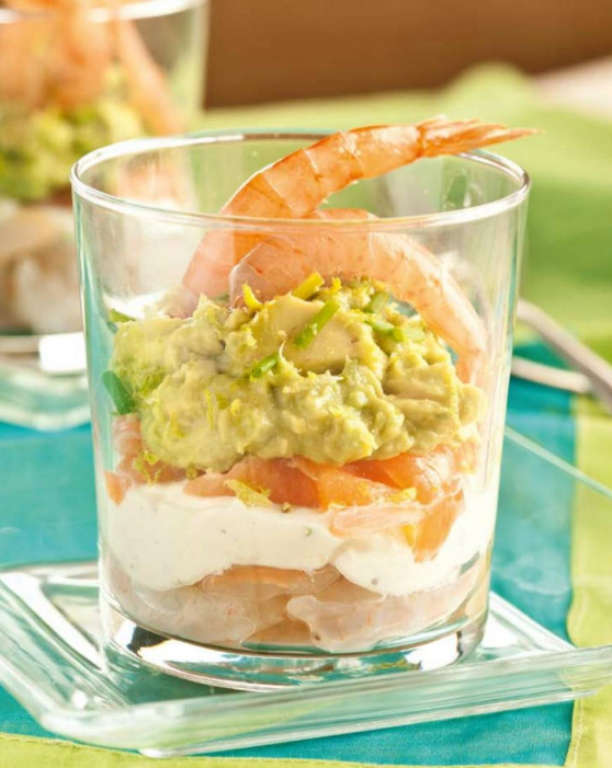 VASITOS DE SALMÓN, CAMARONES, PALTA Y QUESO FRESCO