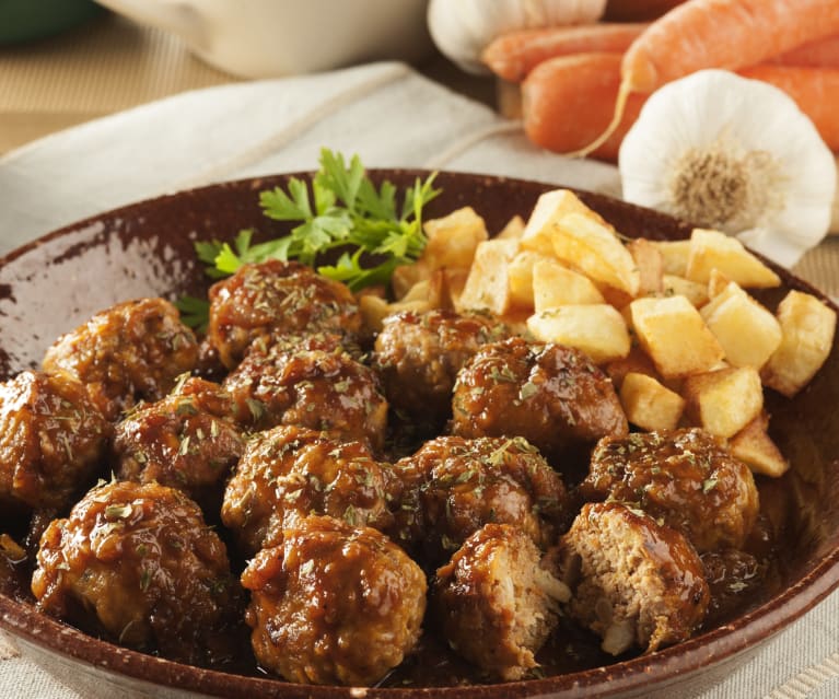 - * Vierta la salsa en la fuente sobre las albóndigas y hornee durante 5-6 minutos a 180°C. Sirva inmediatamente espolvoreadas con perejil.