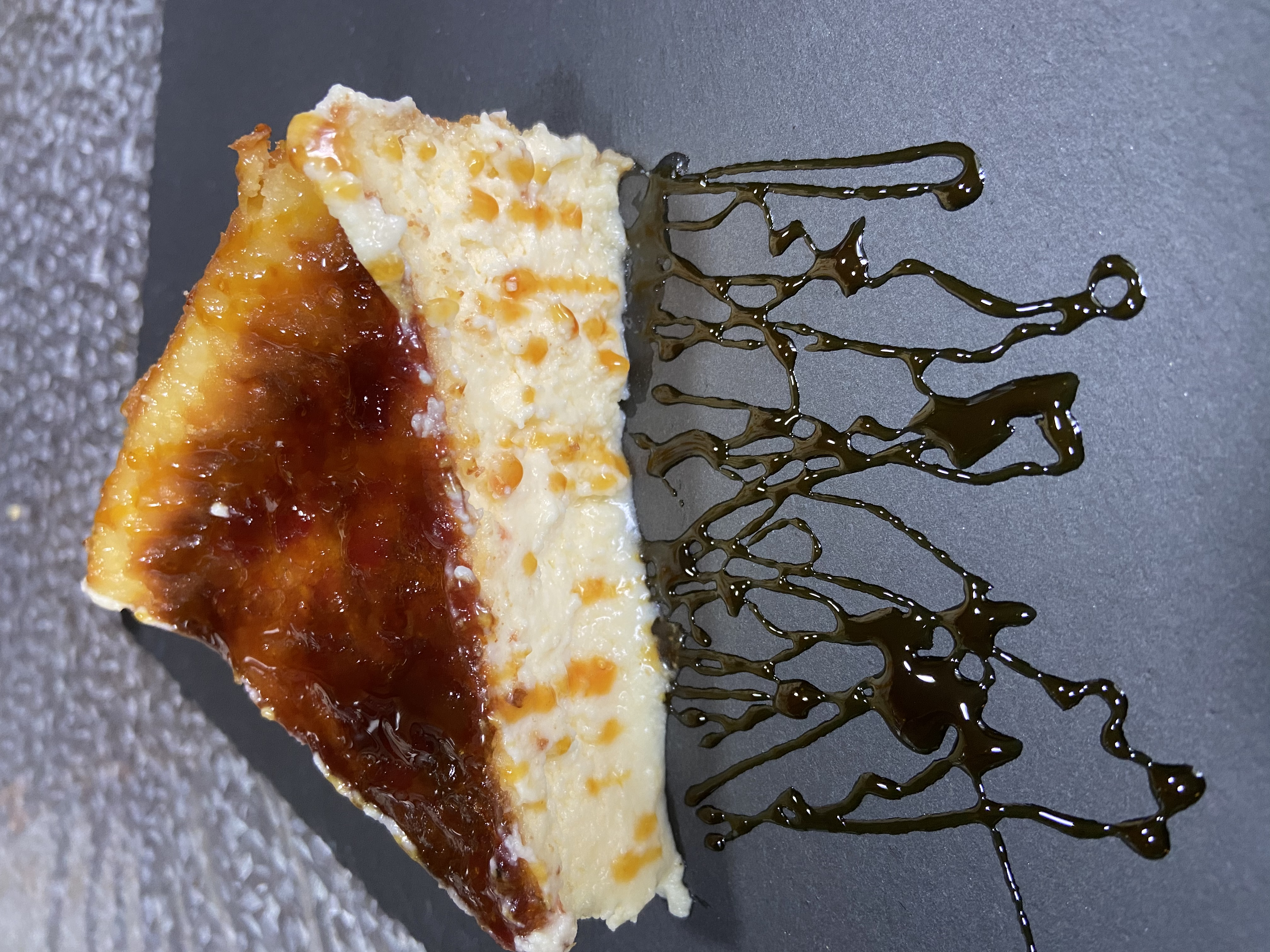 - * Ponga en el vaso el queso cremoso, la nata, los huevos, el azúcar y la harina y mezcle 30 seg/vel 5. Vierta la mezcla en el molde preparado y hornee 50 minutos (200°C) hasta que la superficie esté dorada. Introduzca un palo de brocheta o una aguja en el centro de la tarta para comprobar la cocción: si sale limpia, aunque la parte del centro se mueva, es que está lista. Deje templar dentro del horno con la puerta entreabierta. Retire del horno, desmolde y sirva a temperatura ambiente, regada con miel, mermelada u otro topping a su gusto.