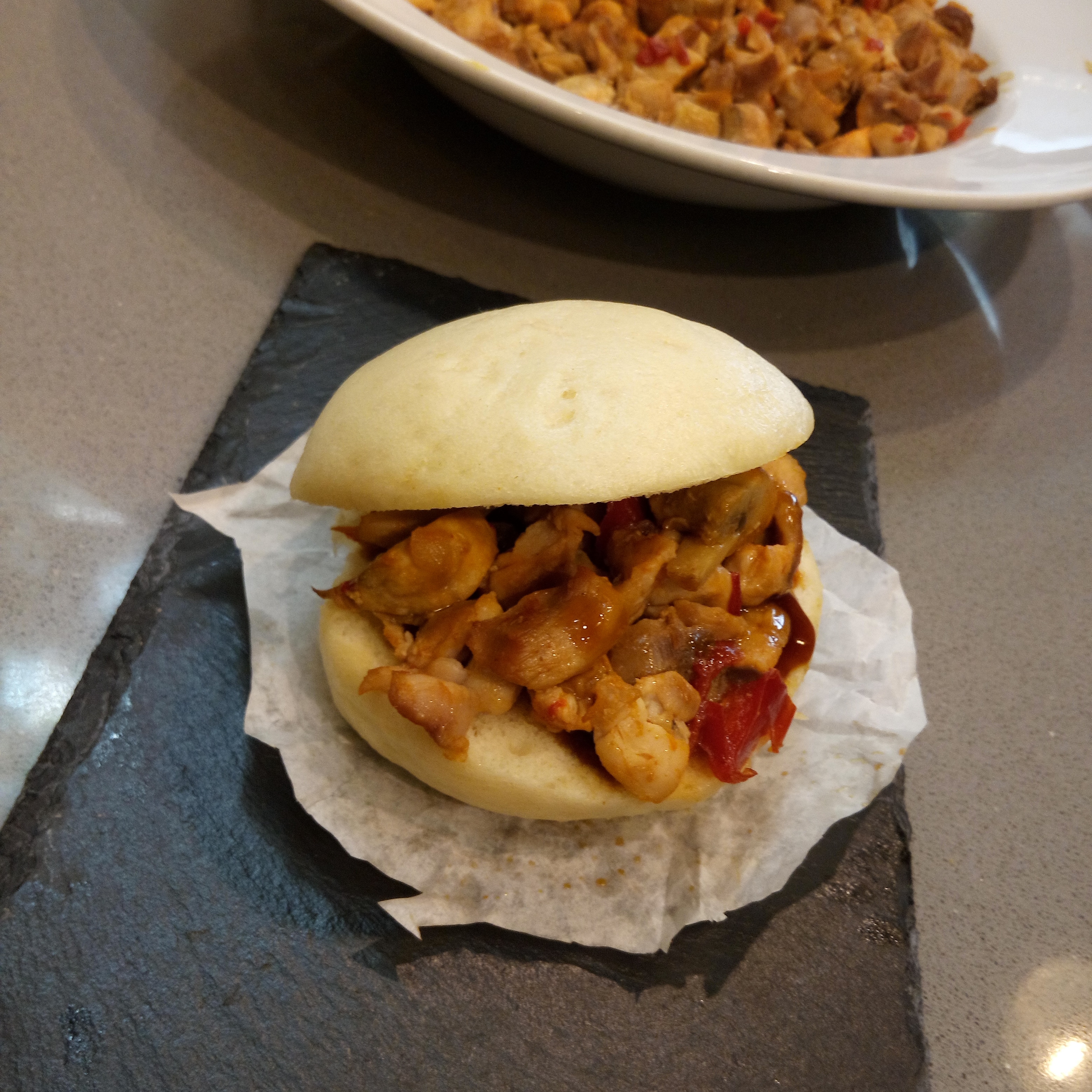 Panes al vapor con pollo teriyaki