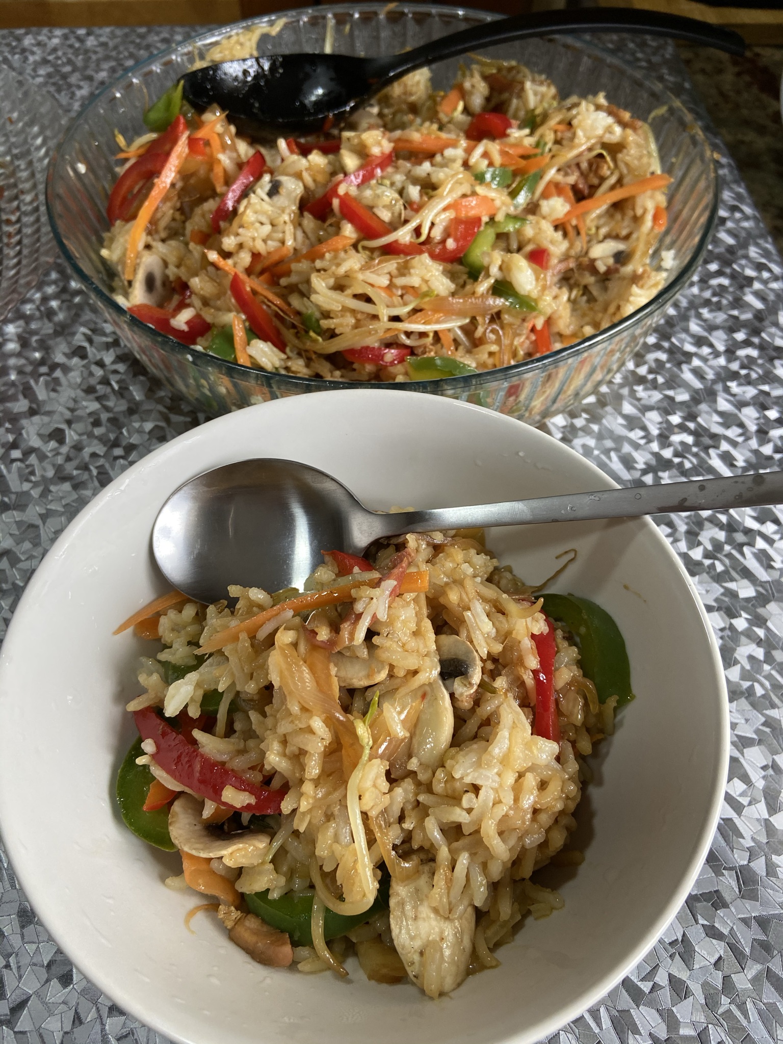 - * 6 contramuslos de pollo sin piel ni hueso (en trozos de 2-3 cm)