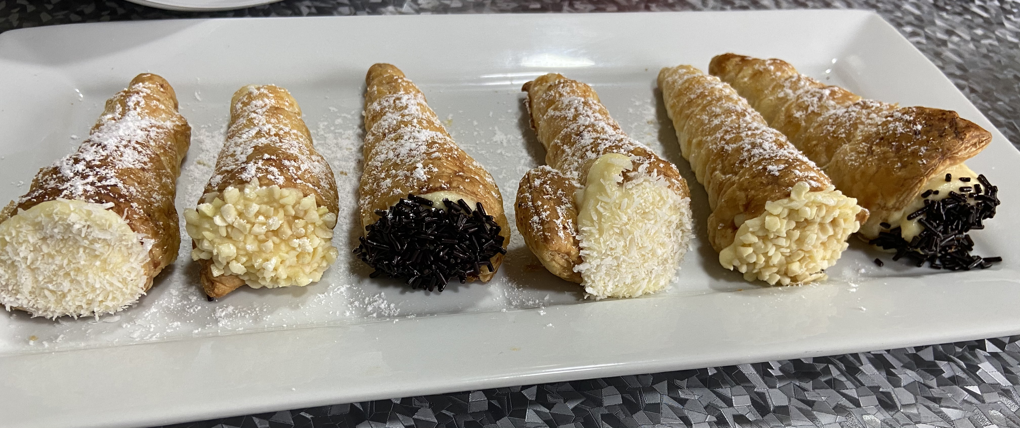 - * Retire los moldes y rellene los canutillos con la manga pastelera. Reboce la crema visible en cada canutillo en coco rallado, almendras o fideos de chocolate. Espolvoree con el azúcar glas y sirva.