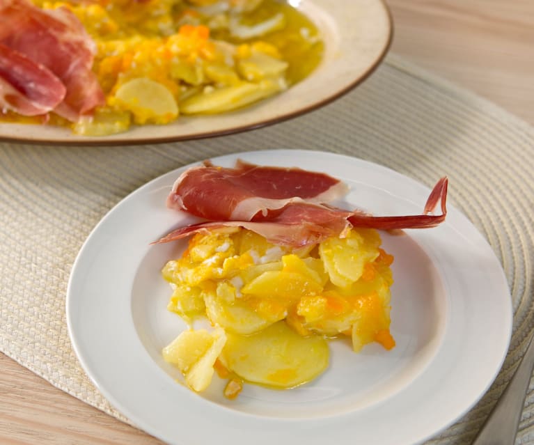 Si quieres ver la receta guiada pincha en Cookidoo®: Huevos rotos con patatas y jamón