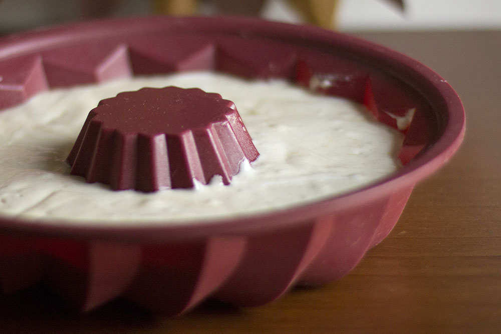 Volcamos a un molde previamente engrasado y damos unos pequeños golpes secos contra la encimera para que se rompan las posibles pompas de aire.