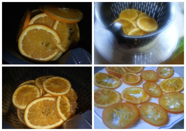 - Sacamos las naranjas y las dejamos que escurran bien sobre una rejilla. Después de dos horas aproximadamente ya podremos utilizarlas.