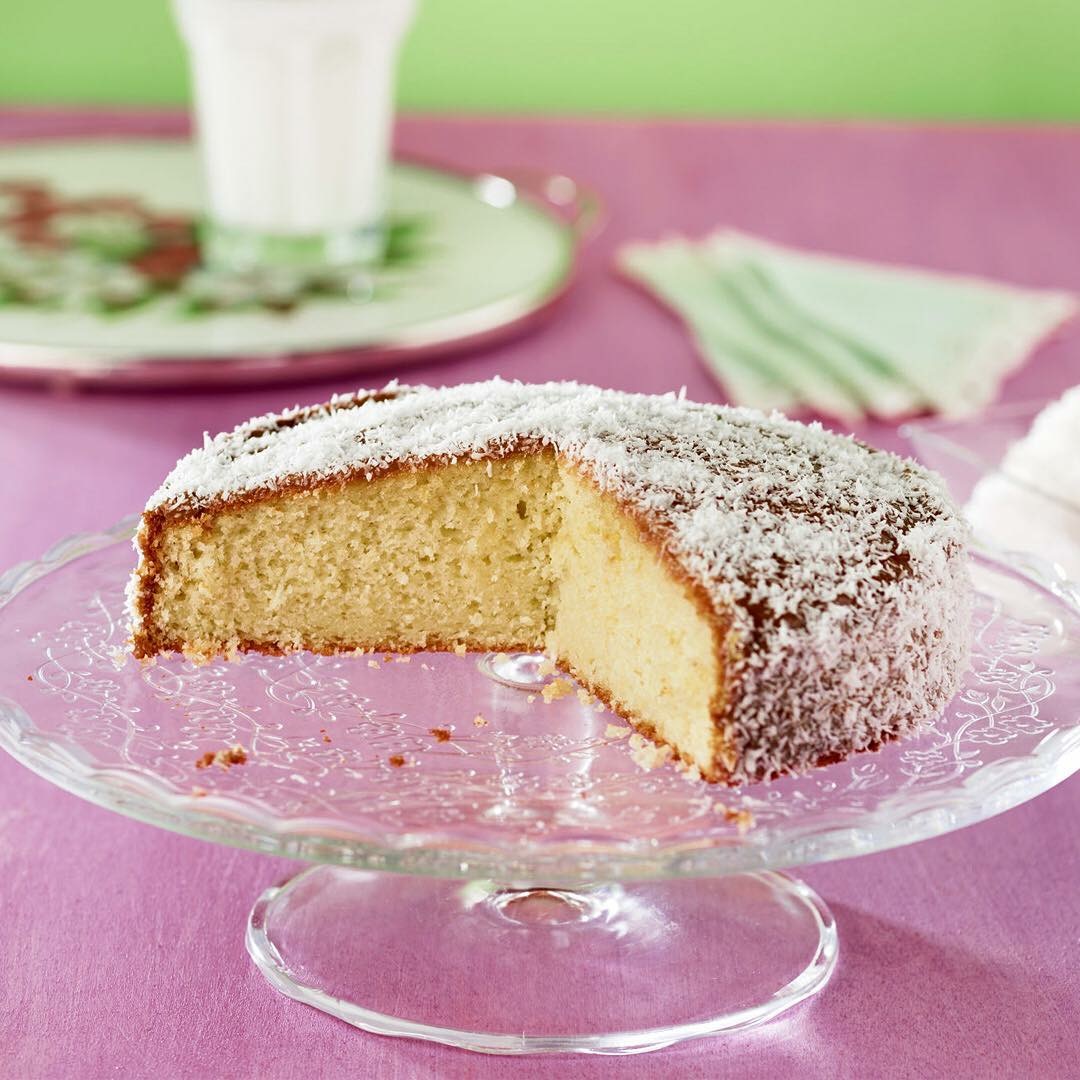 6- Hornee durante 30-35 minutos (180°C). Desmolde y deje enfriar sobre una rejilla. Una vez frío, unte el bizcocho por fuera con el dulce de leche y espolvoréelo con el coco rallado. Corte en porciones y sirva.