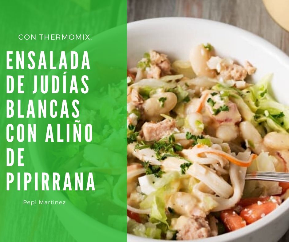 Ensalada de judías blancas con aliño de pipirrana Con Thermomix