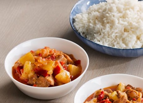 CERDO AGRIDULCE Y ARROZ BLANCO AL VAPOR