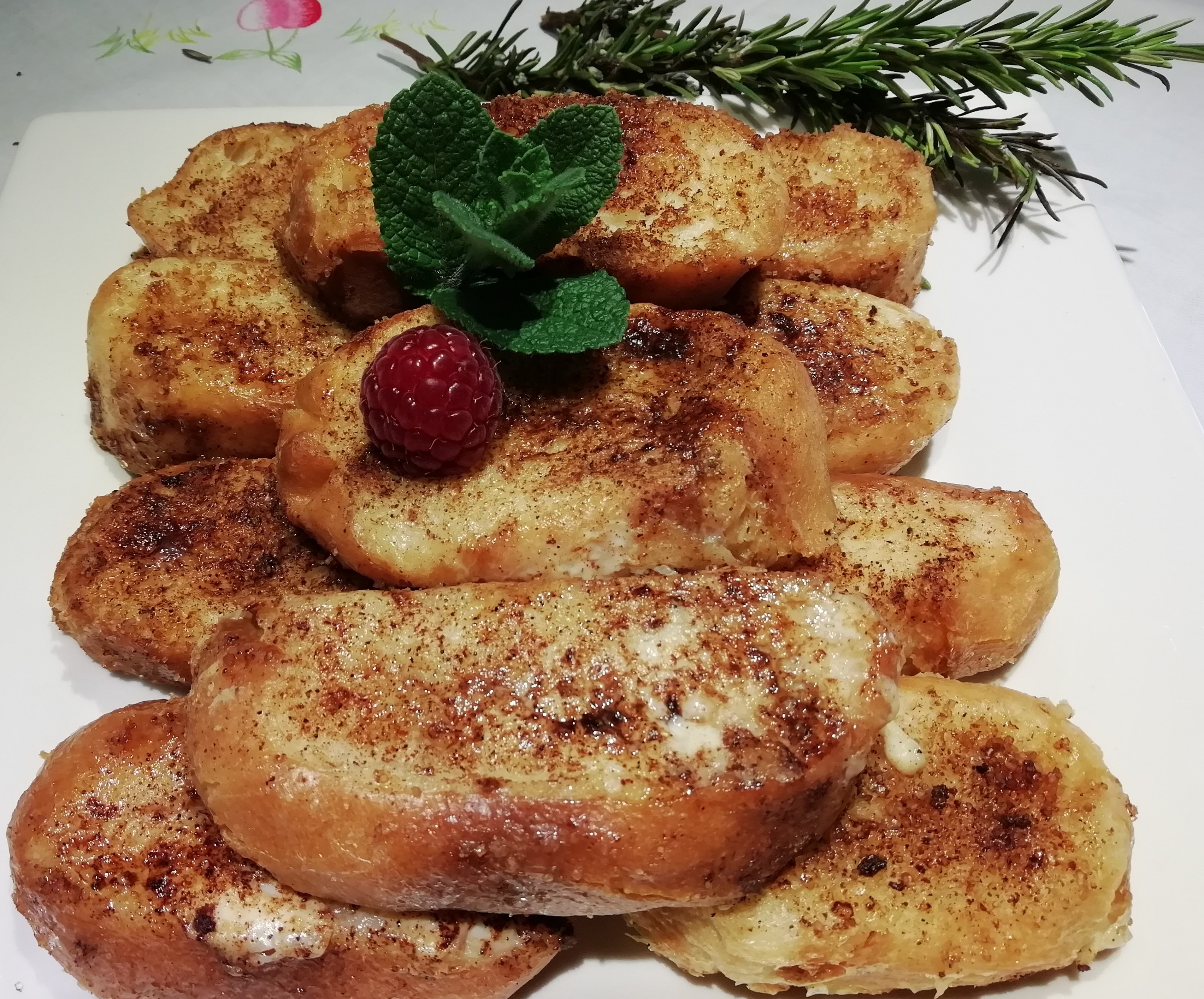 - Hornea las torrijas durante 3 minutos (250ºC). Retira del horno, deja templar 5 minutos y sirve.