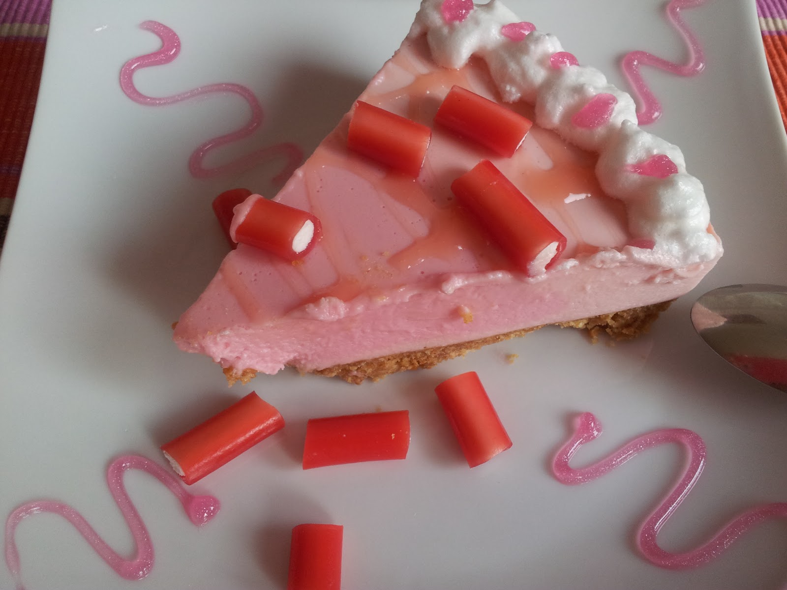 • Decoramos la superficie con el sirope de regaliz. Se puedes hacer rayas, cuadrados o el dibujo que queramos.