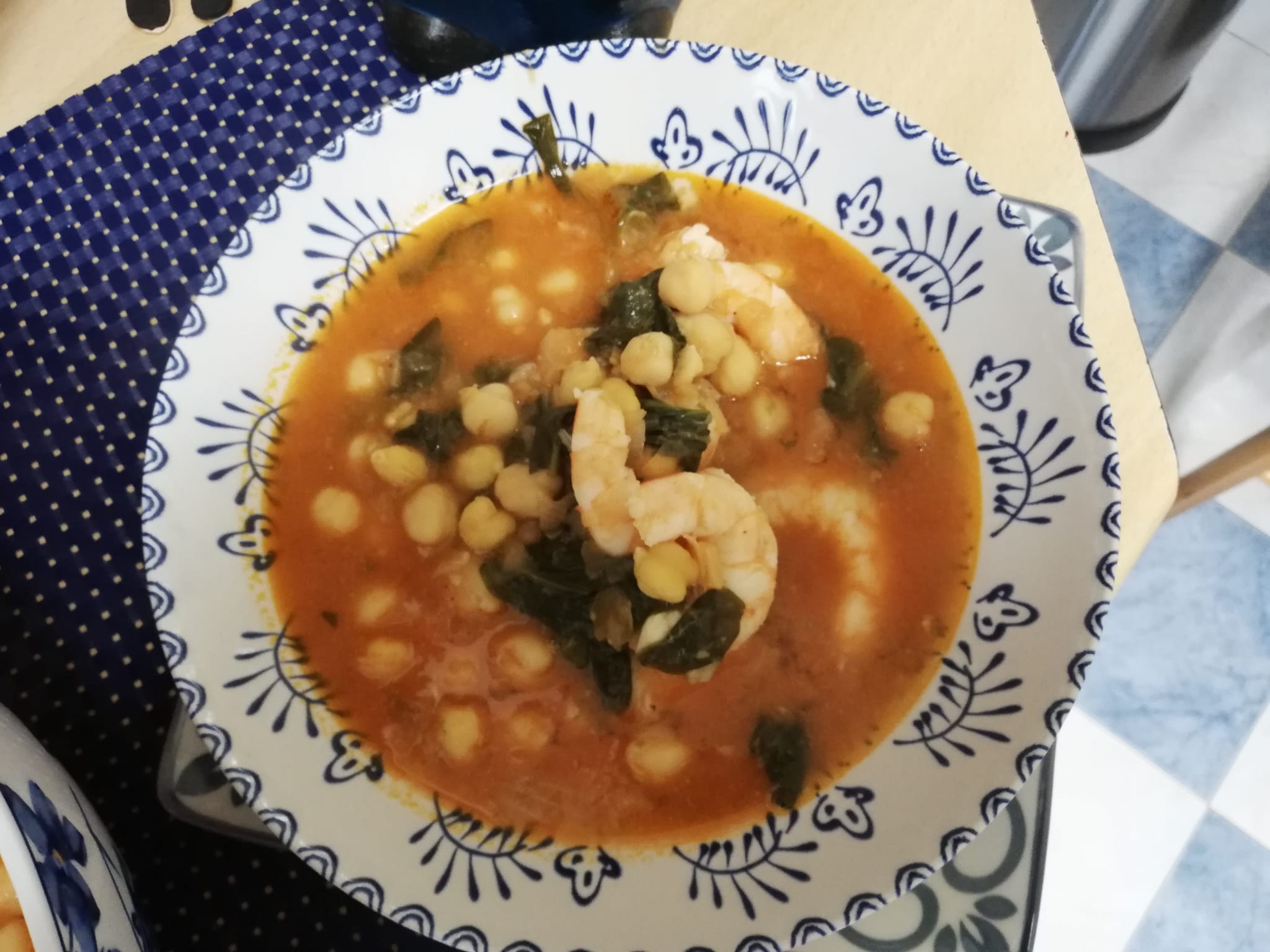 Potaje de garbanzos con espinacas y gambones.(Madrid-Mendez Alvaro)