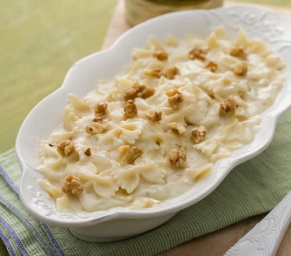 Farfalle con gorgonzola y pera.