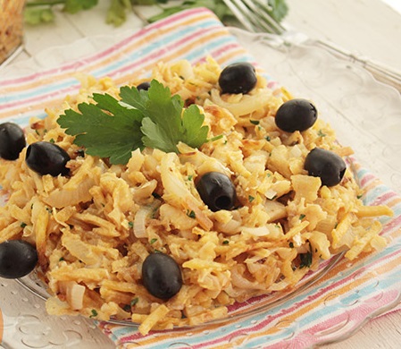 300 gramos bacalao, sin piel ni espinas, desalado y desmigado (escúrralo bien y póngalo sobre papel de cocina)