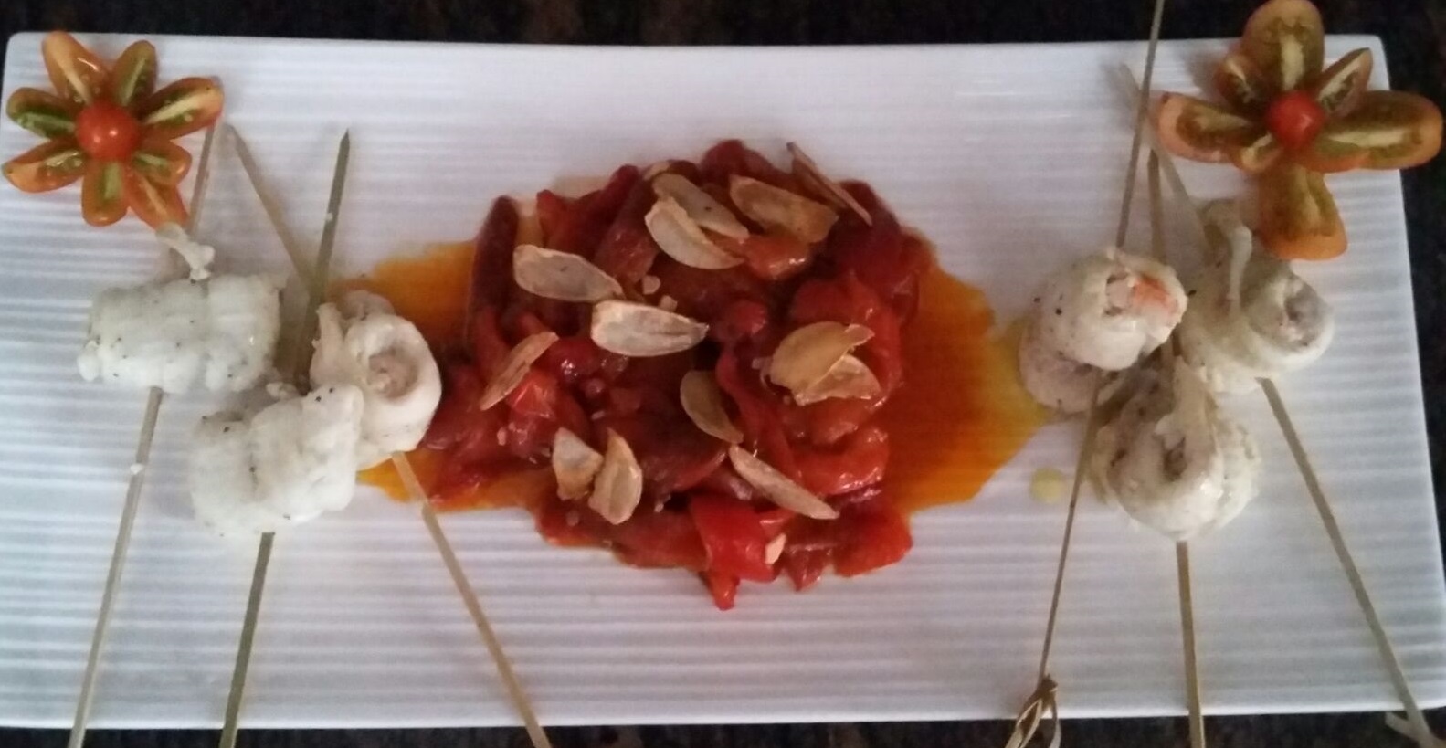 ROLLITOS DE LENGUADO CON PIPERRADA.