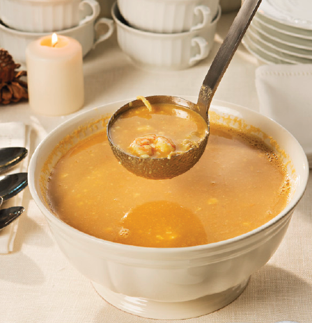 7. Agregar las almejas, los langostinos y programar 3min/100ºC/vel1 Vierta en la sopera reservada y sirva inmediatamente.
