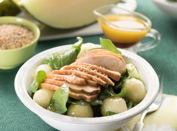 Ensalada de espinacas, pollo y melón: