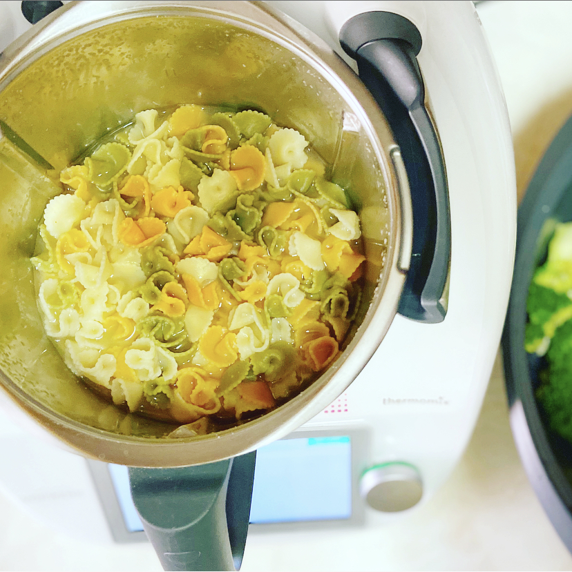 Nota: si te gusta un poco más cocido el brócoli, no tires el agua de la pasta cuando lo escurras, vuélvelo a añadir al vaso, y programa de 5 o 10 min./Varoma/vel. 1, para que el brócoli se cocine un poco más, en función de si no nos gusta más o menos al dente.