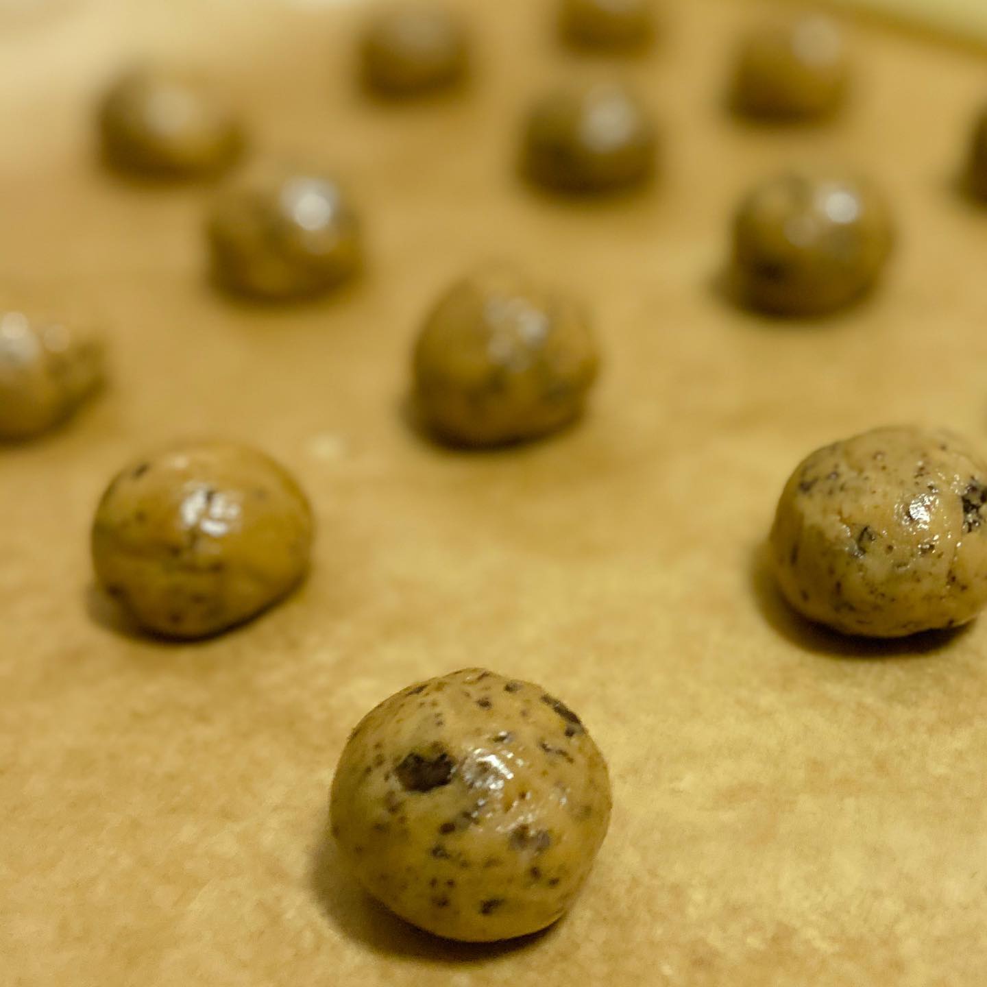 Agregue el chocolate reservado y remueva 30 seg/vel 2. Con ayuda de 2 cucharitas, forme bolas de masa del tamaño de una nuez y póngalas sobre las bandejas de horno preparadas con una separación de 5 cm entre las mismas. Hornee una bandeja cada vez durante 10-12 minutos (180°C) o hasta que las galletas estén doradas. Deje enfriar sobre una rejilla antes de servirlas o guardarlas en un recipiente hermético.