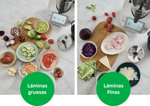 - Cortador +plus: disco lamina, ralla y disco corta en espiral y espaguetis; Ralla zanahorias, queso, patatas o corta en láminas finas verduras y frutas para ensaladas, gratinados o guarniciones. Cortador en espiral: Da un toque gourmet a tus platos con espaguetis de calabacín, zanahoria o remolacha. Ideal para recetas saludables y bajas en carbohidratos.