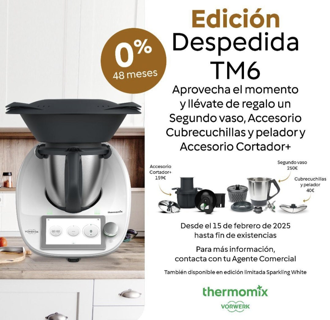 ? Llévate tu Thermomix TM6 con un pack exclusivo de accesorios por solo 1.499€ y sin reserva, compra directa. ¡No dejes pasar esta oportunidad única antes de que se agoten!