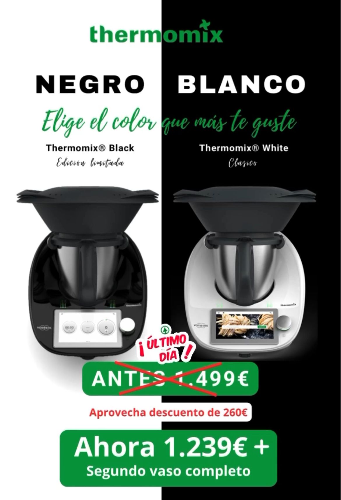 ¡Solo hasta hoy, adquiere tu Thermomix, disfrutarás de un increíble descuento de 260€.