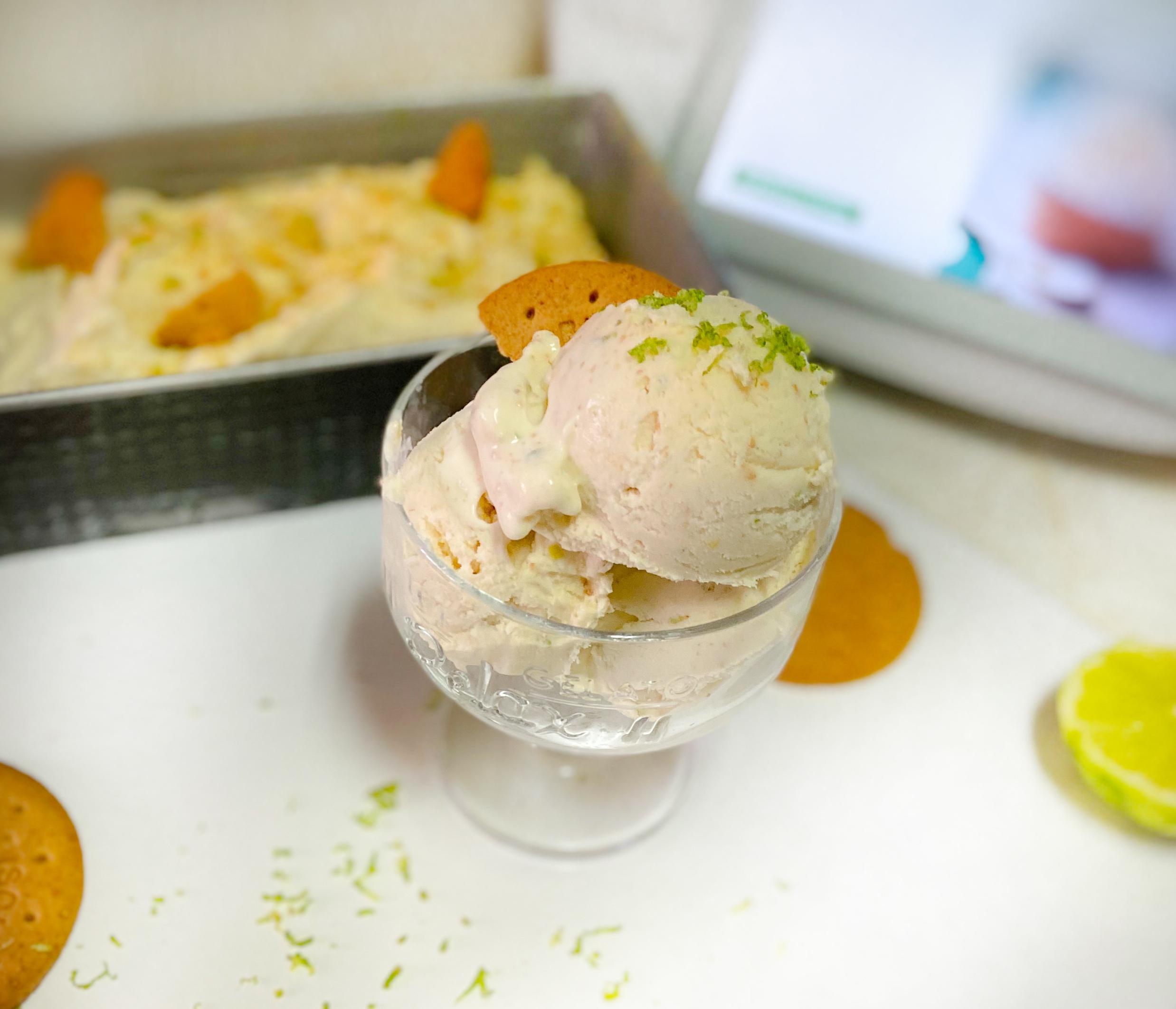 Hoy os traigo este riquísimo helado, inspirado en la Tarta de Lima, de origen americano, Key lime pie.