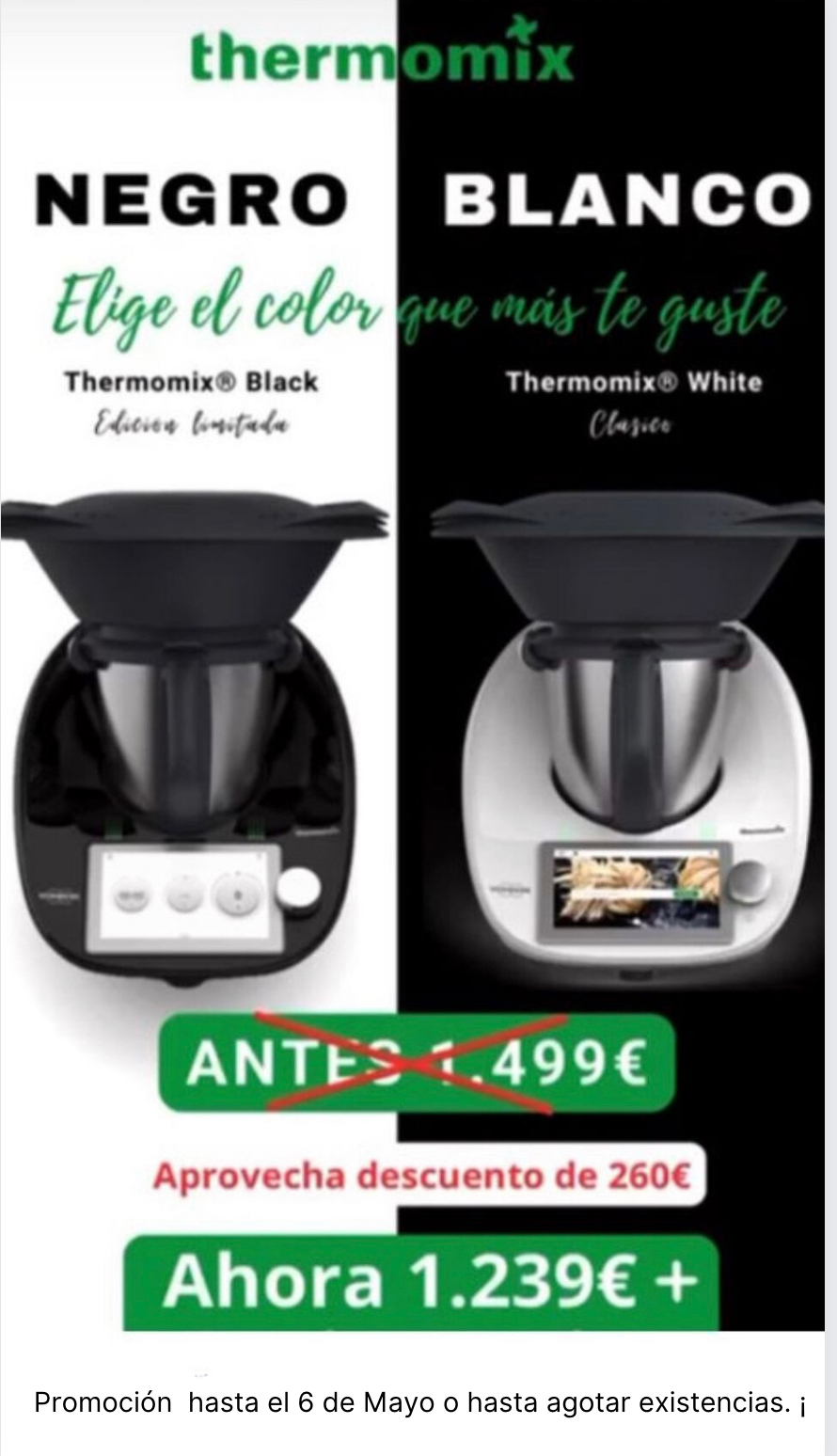 También tendrás la oportunidad de elegir entre el elegante Thermomix Tm6 en blanco o en negro. Esta promoción especial estará vigente hasta el 6 de mayo, así que no te pierdas la oportunidad de disfrutar de esta increíble oferta.