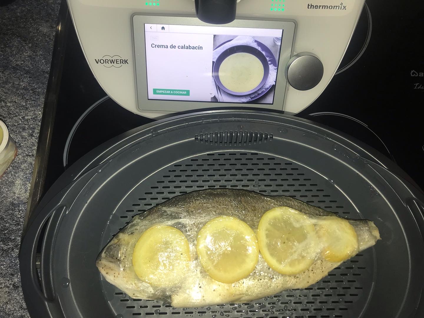 En esta receta he querido aprovechar el vaso para hacer una crema mientras utilizamos ese chorro de vapor para hacer nuestro pescado favorito.
